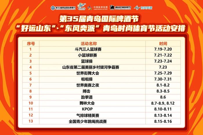 我们准备好迎接夏日最燃的体育狂欢了吗?7月19日至8月16日,第35届青岛国际啤酒节“好运山东”·“东风奕派”青岛时尚体育节,将在青岛西海岸新区金沙滩啤酒城火力全开!